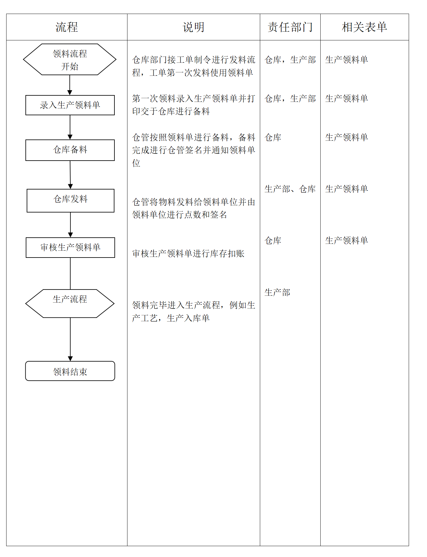 生产领料单用于生产部门领料,在开立好工单后,领料部门(可以是供应商)提供生产领料单领料,生产领料单分为两种: