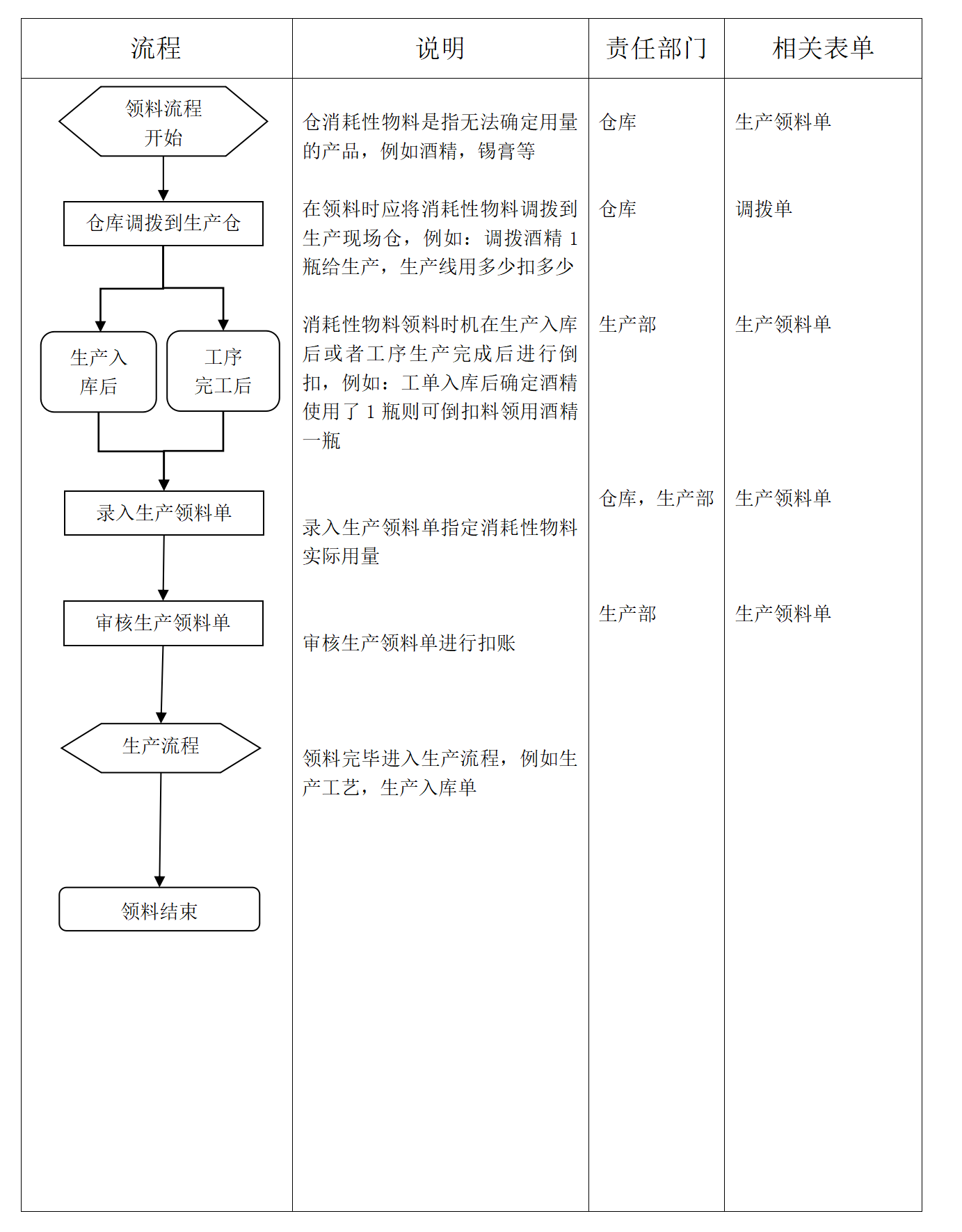 一般物料在领料时不可超过工单需领数量,消耗性物料允许超过工单需领数量,按照实际消耗量领料。一般物料必须在生产入库前领料完毕,否则无法进行生产入库