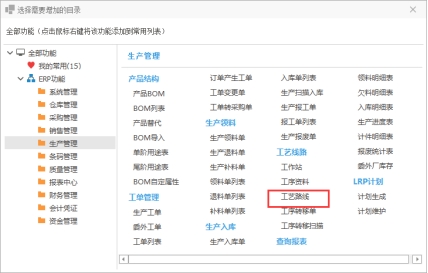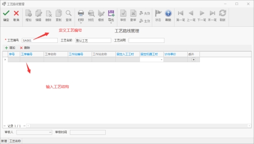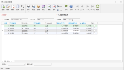 工艺路线定义产品的加工路线,经过的工序,以及每个工序的加工单价等信息。