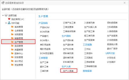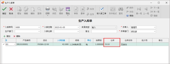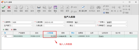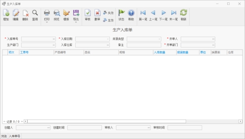 生产入库单用于工单生产完成后,入库到仓库。如果启用条码管理,可以使用条码或RIFD等介质扫码入库,请参见 扫码入库