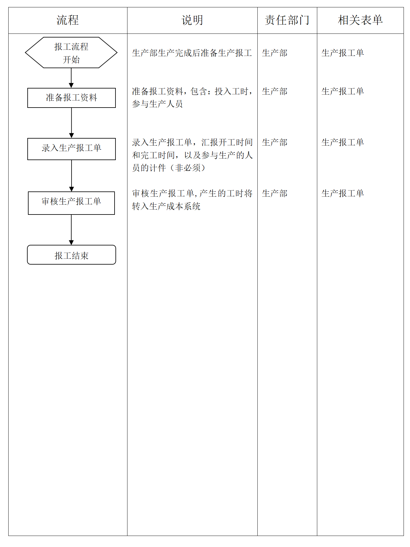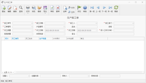 生产报工单用于汇报工单投入生产的人工工时和机器工时,作业员等信息。