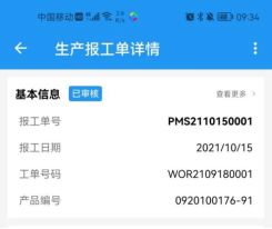 1)生产报工单新增时,首先输入工单编号,输入完成将自动带入其他的信息。