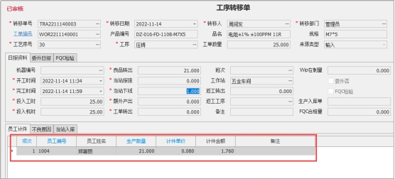 计件统计数据来源于生产管理系统中的“工序转移单”和“生产汇报单”