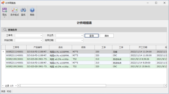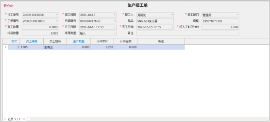 1)【生产管理】-【查询报表】-【计件明细表】打开报表