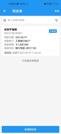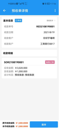 预收单是提前收取客户款项,例如预收订金等场景,如果客户已有预收单在正式收款核销时将自动对冲预收款项。