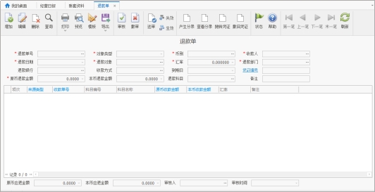 应付退款单是预付单收款后,收款对象又退回时使用,例如:已收取客户订金后又退回给客户,如果预付单已核销则不再允许做退款单。