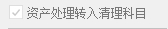 如果勾选,则资产在出售,报废,销账时,与之对应的分录底稿对方科目直接转入固定资产清理科目。如果不勾选则转入设置的对方科目  |