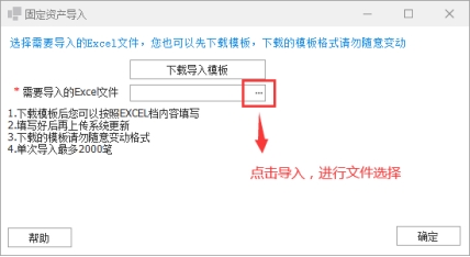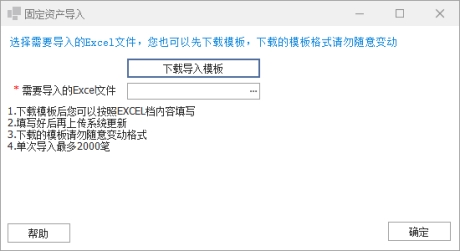 固定资产资料可以使用EXCEL模板进行批量导入,提供模板下载和导入的功能,在使用EXCEL导入前请确保电脑本机已安装EXCEL编辑软件