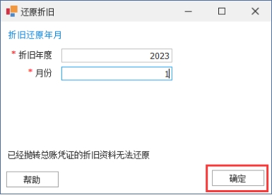 如果产生的折旧费出现错误,可以还原当月折旧,进入“还原折旧”功能即可将当月折旧撤回。