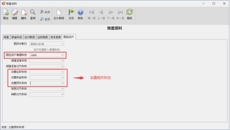 1)当资产出售单完成新曾审核后需要产生相应的分录底稿,如果首次使用固定资产功能,需要设定账套的基本科目信息。进入 【财务管理】-【账套资料】-【账套资料】进行设置。