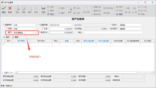 2)如果是出售给客户则可以在此指定出售的客户(此步骤非必须)