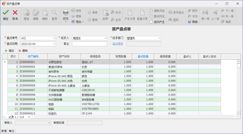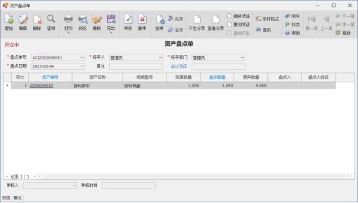 资产盘点单新增完成后需要审核以生效,审核单据后,该资产的数量和保管人,保管部门,存放位置将自动被更新。