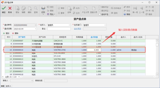 2)输入实际的盘点数量,自动带出差异和盘点人,没有差异的部分可选输入盘点数量。