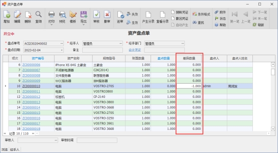固定资产周期盘点资产数量,保管人,保管部门和存放位置,产生盘盈或盘亏将自动入账或调整。