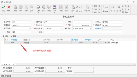 费用类型用于定义常用的费用类型。例如在应收账款,应付账款中可以选择费用类型。