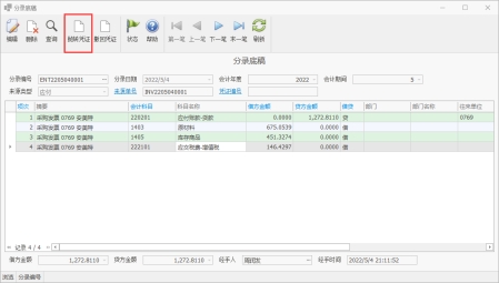 在各个子系统中的功能导航区域都有分录相关操作的按钮,使用此按钮能够快速产生分录或修改分录底稿,也可在各子系统单独抛转到总账凭证中