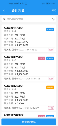 使用APP可以快速管理会计凭证,APP中可以新增,编辑,删除,审核,登账会计凭证。