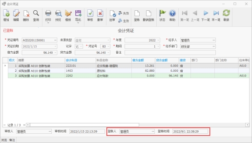 会计凭证审核时,代表经手人增加会计科目完成,审核后的凭证将无法再修改,如果借贷方金额不一致则不可审核。审核并不会将凭证登入账簿