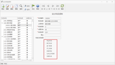 会计科目,会计凭证输入科目时将检查该科目是否是明细科目,如果非明细科目将不允许使用。明细科目是指如果有多级科目,必须使用最下级的科目。  |