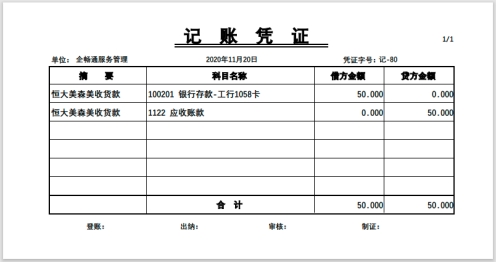点击打印后,将直接打印出会计凭证(单张凭证)