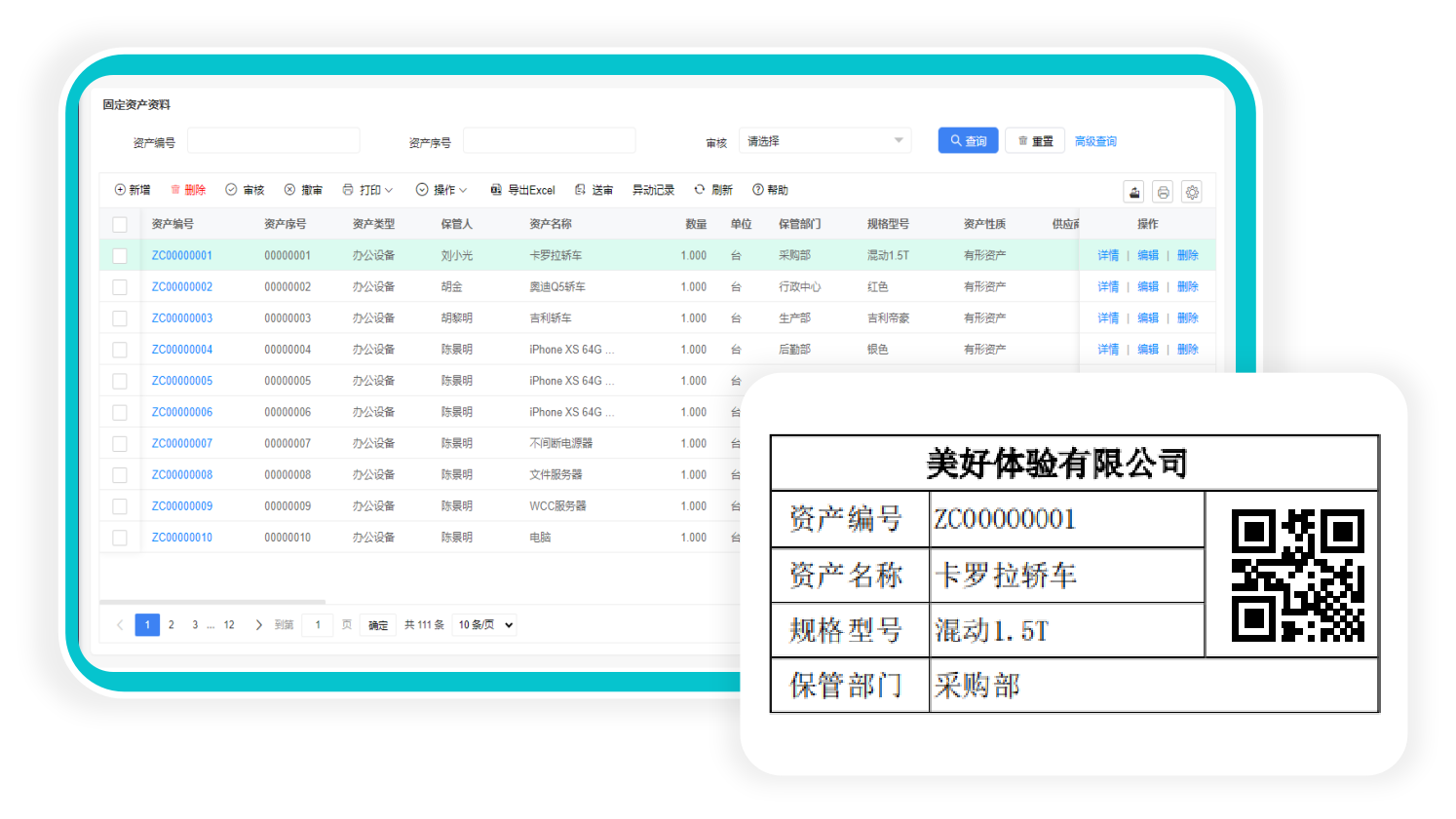 固定资产条码标签打印和扫码,快速扫码查询固资状态和固定资产盘点等异动