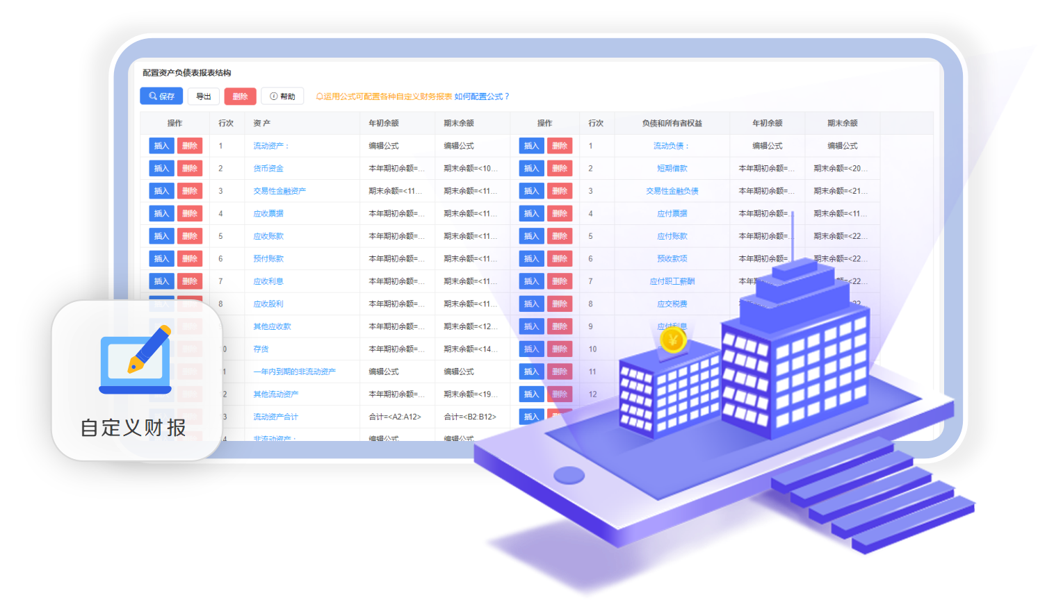 灵活的自定义公式财务报表,各种财报随心设计,助力多维度财务分析