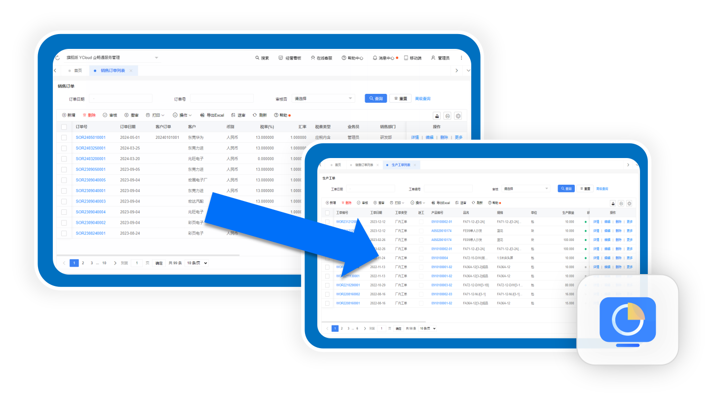 与进销存紧密协同,多种业务流自动下推到生产过程
